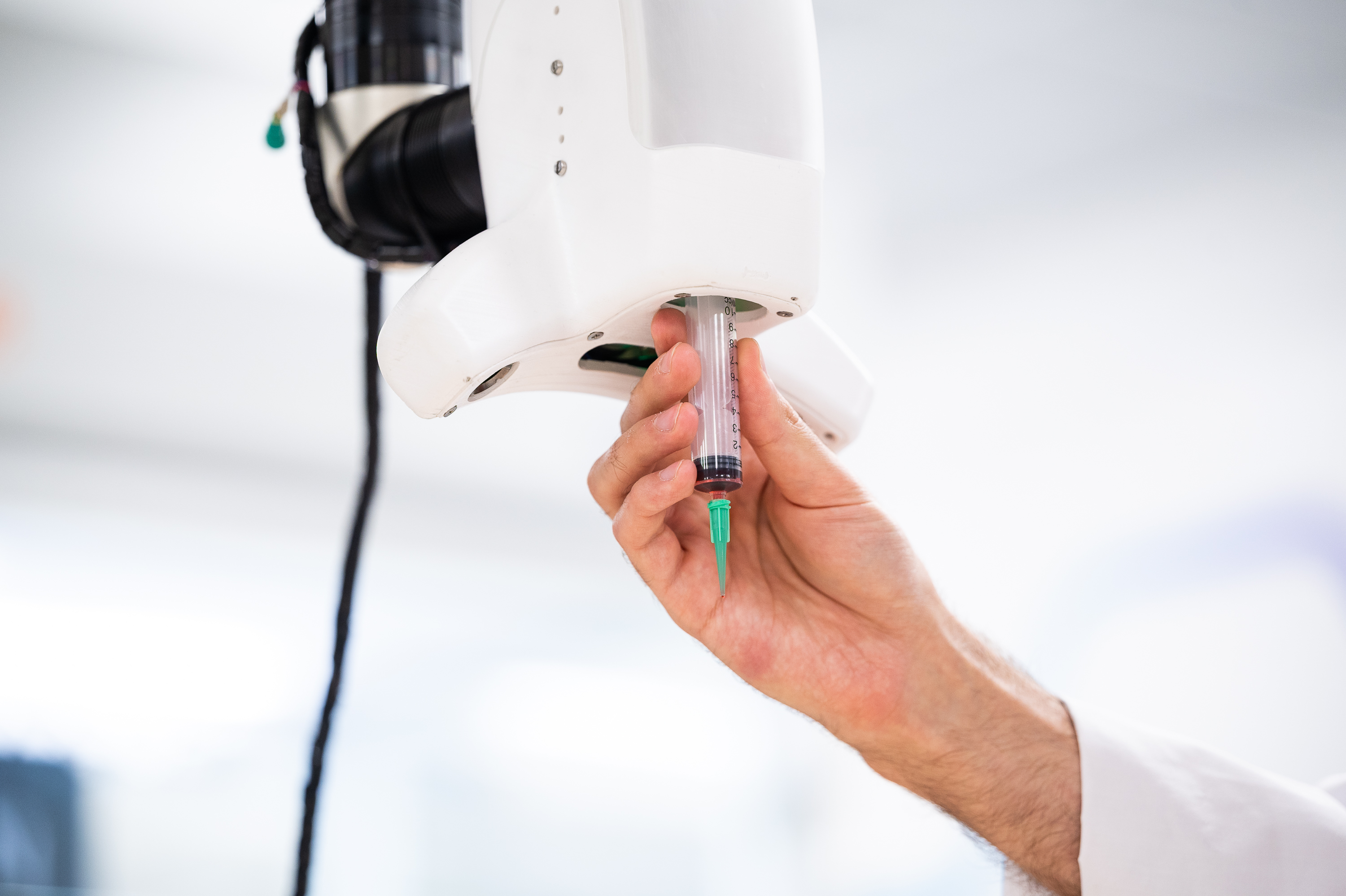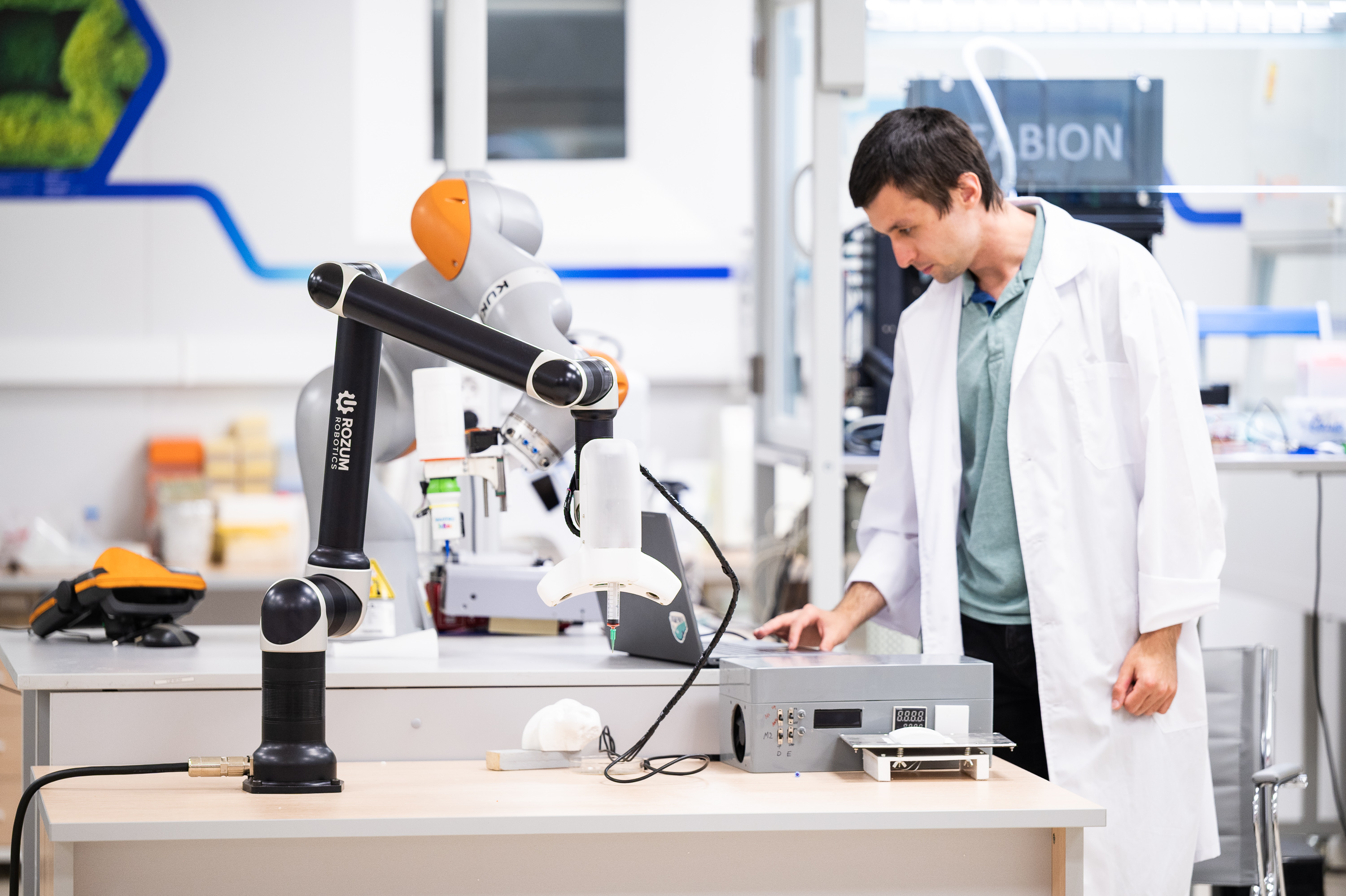 Использование робота-манипулятора позволяет осуществлять биопечать на криволинейных поверхностях с адаптацией под дыхание пациента.