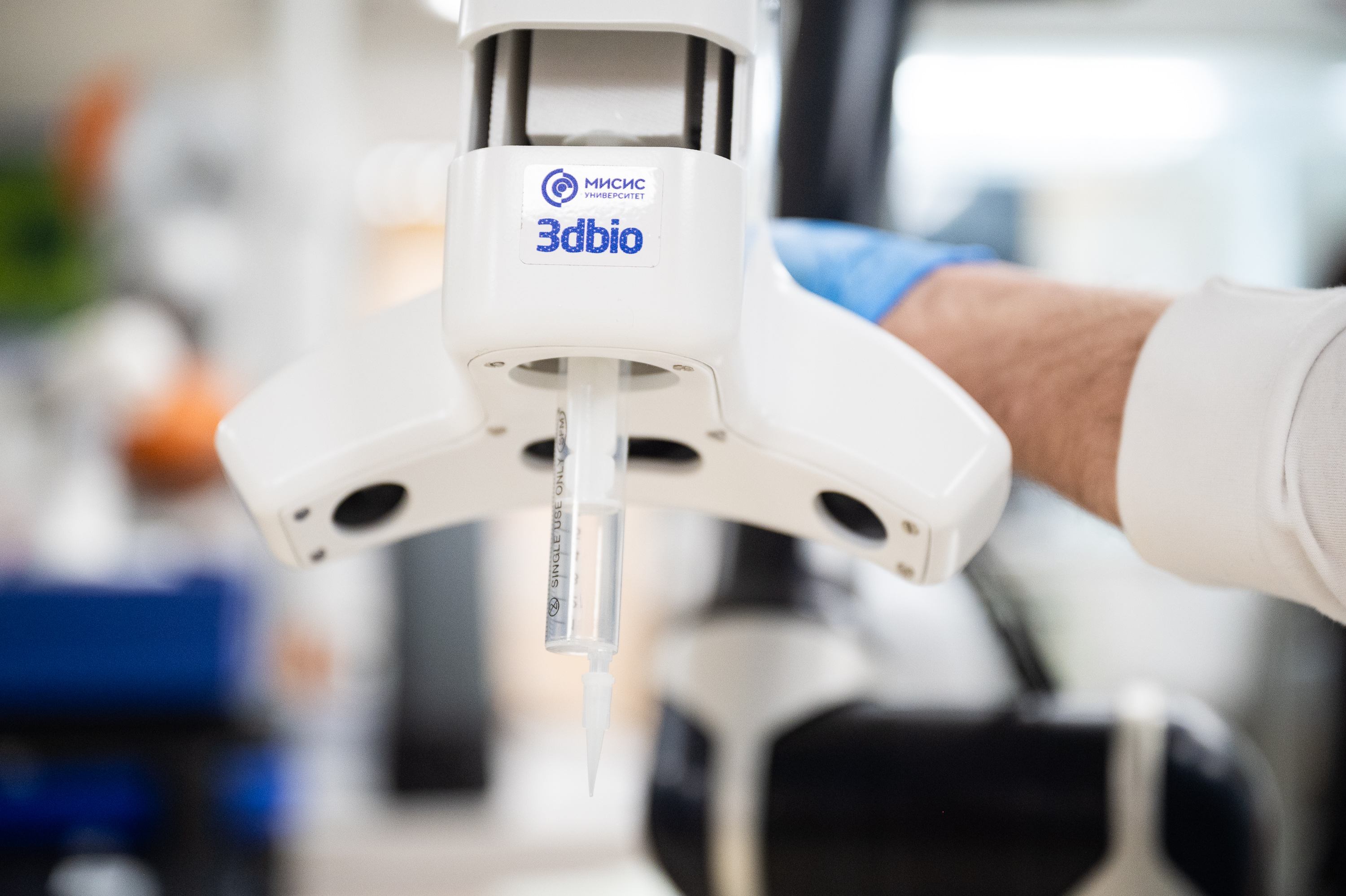 Роботическая система биопечати in situ непосредственно на тело пациента, разработанная учеными Университета МИСИС. В качестве биоматериала выступает гидрогель с добавлением клеток пациента, факторов роста и др. элементов.
