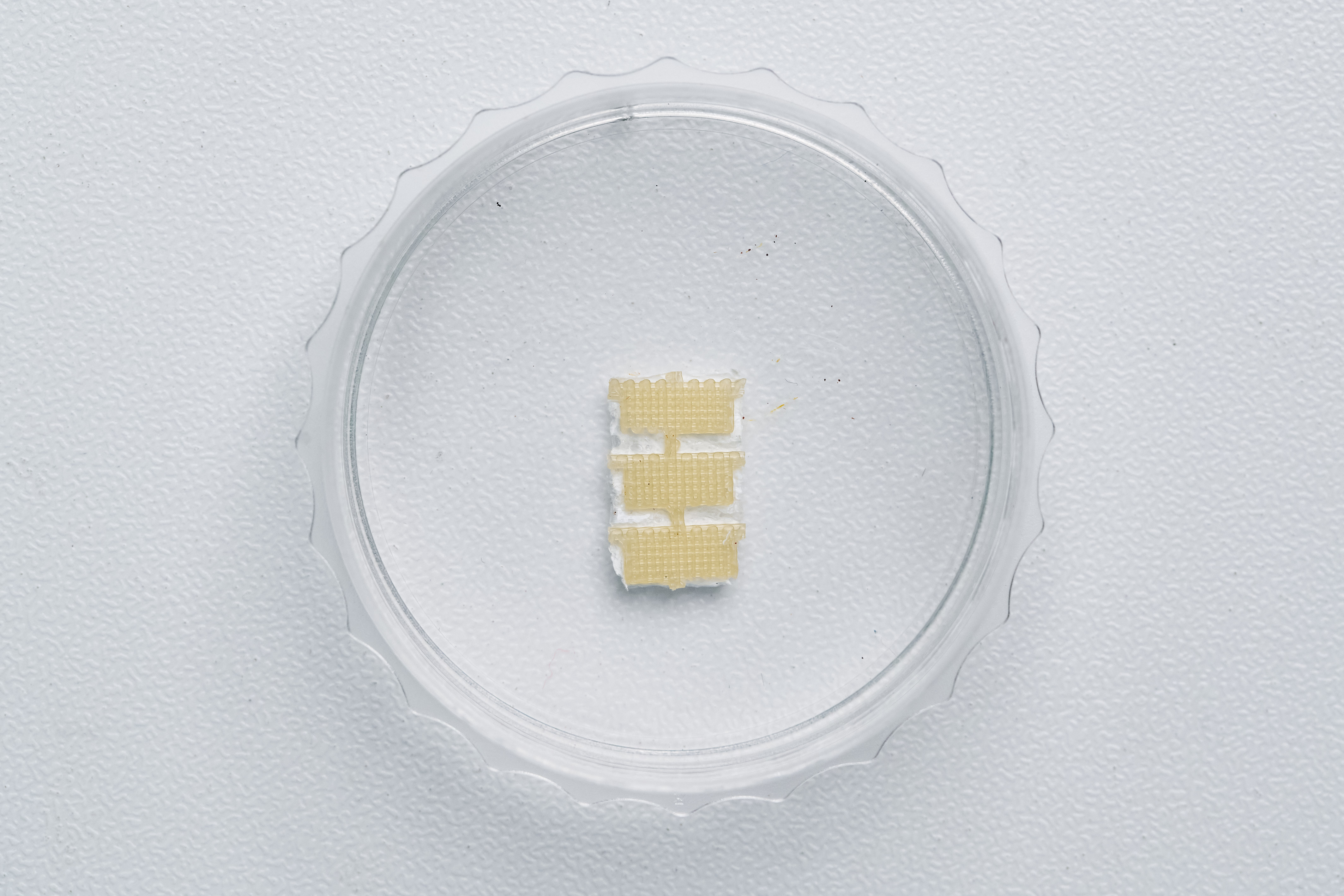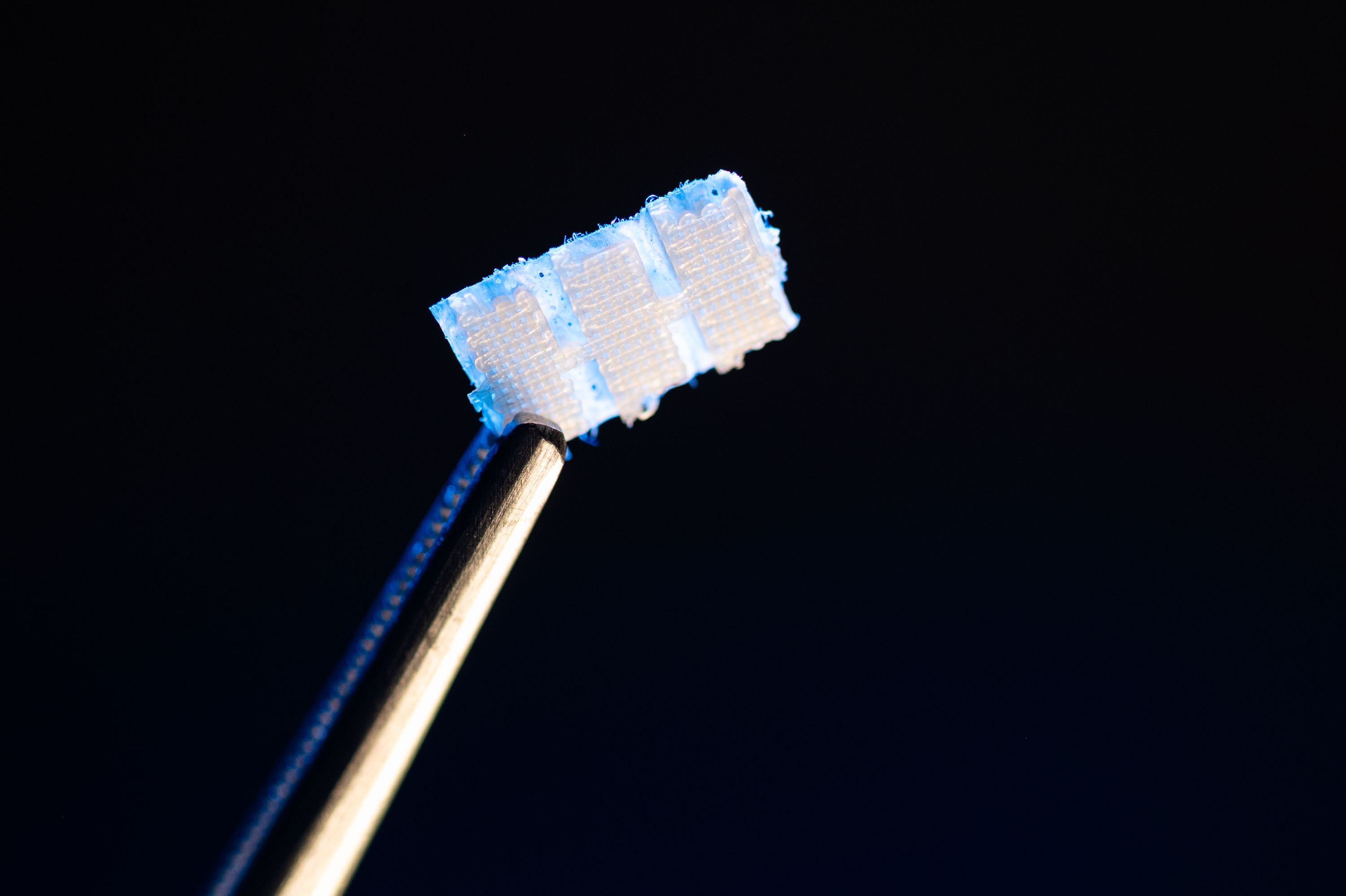 Слоистая структура способствует лучшей интеграции имплантируемой конструкции в ткани организма. Ориентированные нановолокна стимулируют направленную регенерацию, а гель-образующий полимер в основе не вызывает осложнений и воспалительных реакций.